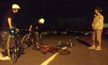 只今、車輪待ちのNISHIOKAくんが借りたタイヤを取り付けて練習に初参戦。