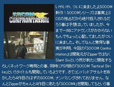 「SOCOM: Confrontation」これのためならPS3買います。(少し迷いは…)