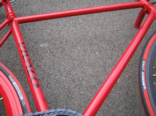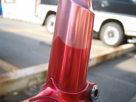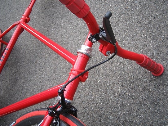 ハンドルもステムもまっかっか。