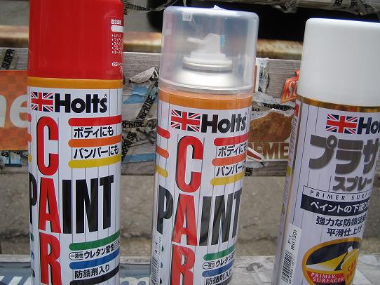 って事で、車用品店で車用のスプレー、錆止め、クリアを買ってきてトライ。。。