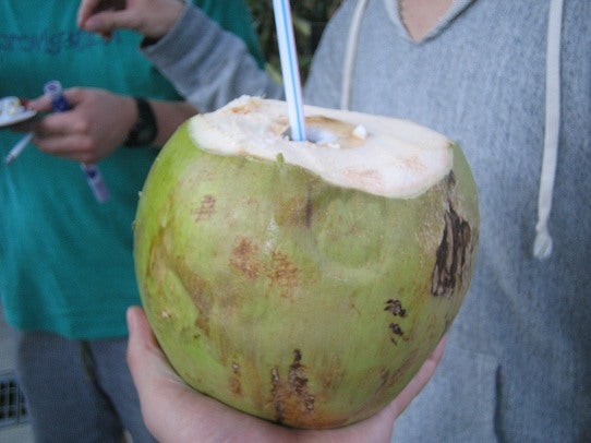ココナッツジュース。実なんて醤油かかってからイカの刺身みたい。オレは苦手系。