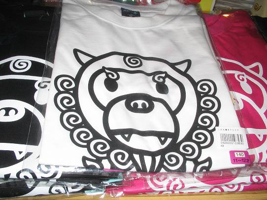 お土産屋さんで見つけたこのTシャツwこれ怒られるだろwもう一個あったすげーのは「ステューシー」のロゴに「シーサー」ってw