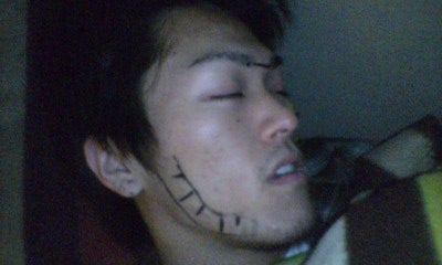 落書きされても起きないとはw