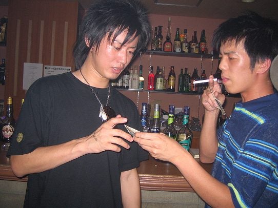 盛り上がってるTAKAOKAくんとSHIOYA。テキーラで吐いてました。取りあえずここら辺までは覚えてるんですが、飲んでたら眠たくなってソファで一時就寝。