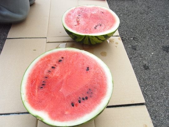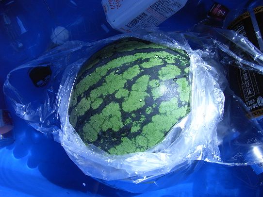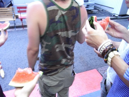 スイカタイム。MIZUNOくんありがとね。100均までじゃんけんで負けてナイフ買いに行ったけど、本当なんでもありますね。あそこは。