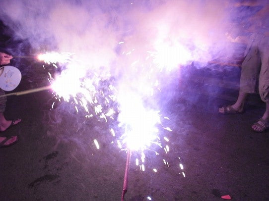 すぐ止んでよかった。暗くなってきたらお次は花火。何でもやり放題ですね。