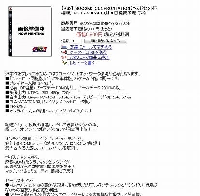 *10/30発売「SOCOM CONFRONTATION」