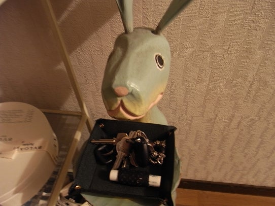 うそくせーウサギが持ってます。スニーカーとかを並べてるのが最近邪魔でしょうがないので、