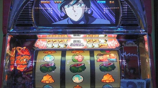 3G目、「まだだ」ってエリーゼ。順押し菊姉狙いで1コマ滑ってスイカが斜めテンパイ。で右押すと外れてケツ浮く。