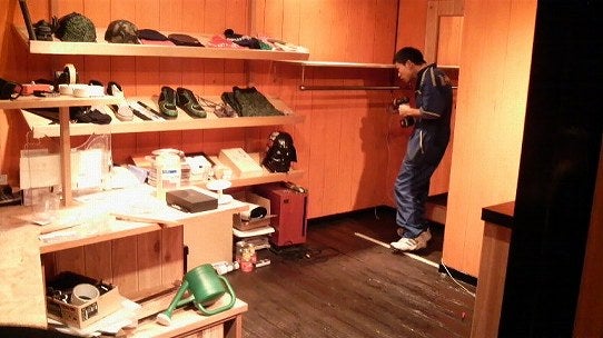 作業に作業着で励むSHINCHAN。そして完成した店内。