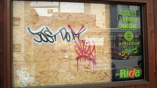 ジャスト ドゥ チルの文字が。13(UCCHI-)さんに書いてもらったらしいです。ガラス越しで良い感じです。