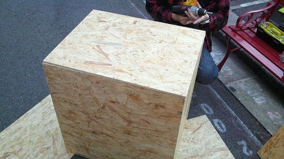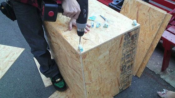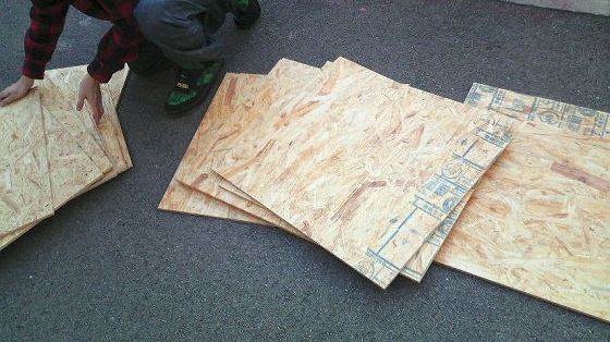 買って、カットしてもらった板。作業にかかるのは元こーいう系の学校行って現アパレルのダイナ。二人がかりで開始。