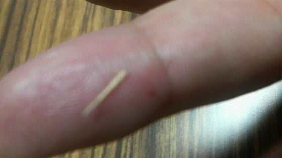 指にデカイ木が刺さって痛くて抜いたけど、帰宅してもまだ痛ー。