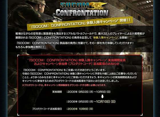 (っていうか書いてなかったけど、SOCOMの抽選に外れた人も全員できる様にコードが配布されました。