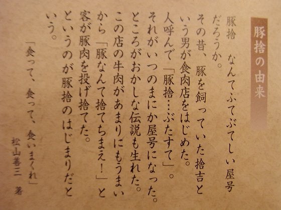 豚捨ってすき焼きとかのお店に。牛丼有名。