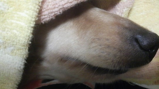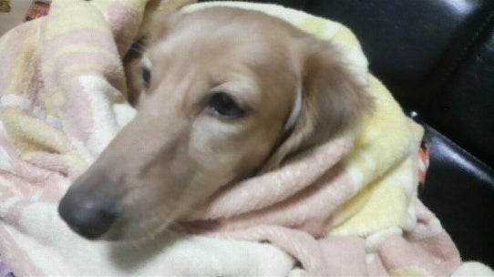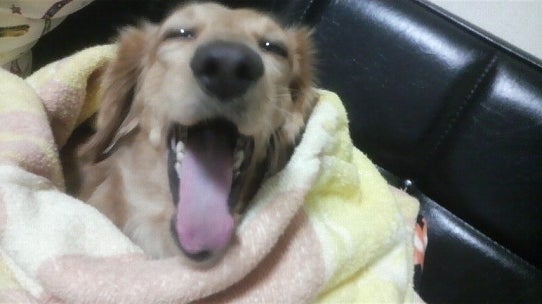 布団に包まりながらこいつゲームばっかしてるなって顔しながらワンコが。