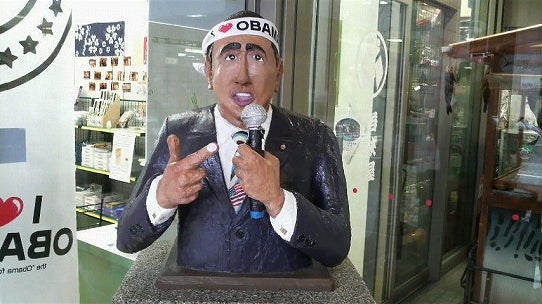 目的のお土産屋さんへ。オバマ氏の謎の置物。なんか雑ですが味はあり。