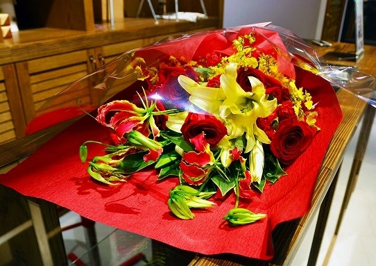 追撃で遅れて持ってきてくれた東京に勉強中のNIKKUNから花束。