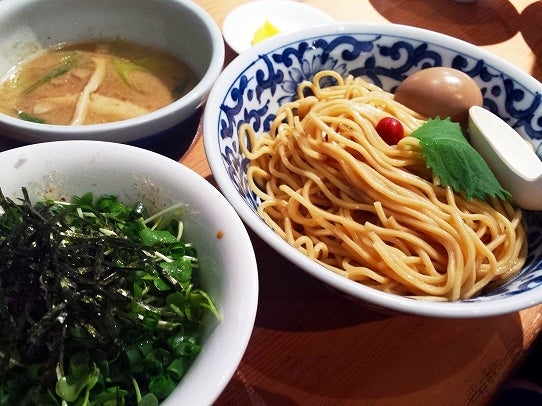 最近よく食べるつけ麺ねぎ飯コンボ。