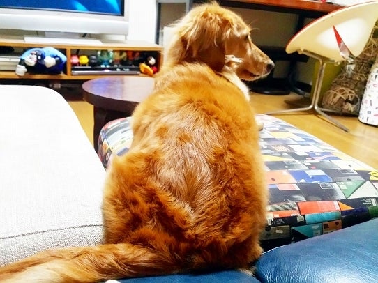 わんこの足をマッサージしつつ、