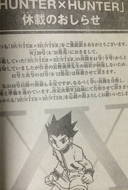 ハンターハンターの連載がまた止まってしまったことに絶望。