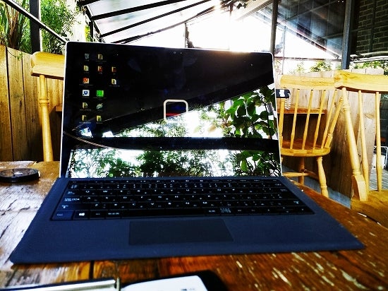 お隣のテラス借りて書きもの。