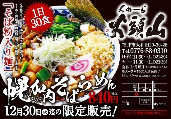 真冬のらーめん「幌加内そばらーめん」開始です。