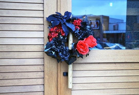 スタッフ の手作りリースがお出迎えしてくれますので、