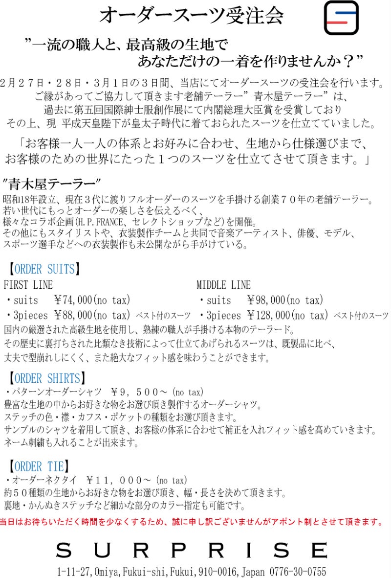 縁があります、青木屋テーラーさんをお呼びして、