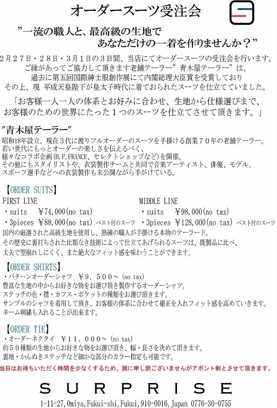 すごいテーラーさんにすごいスーツを作ってもらいましょー、ってイベント。