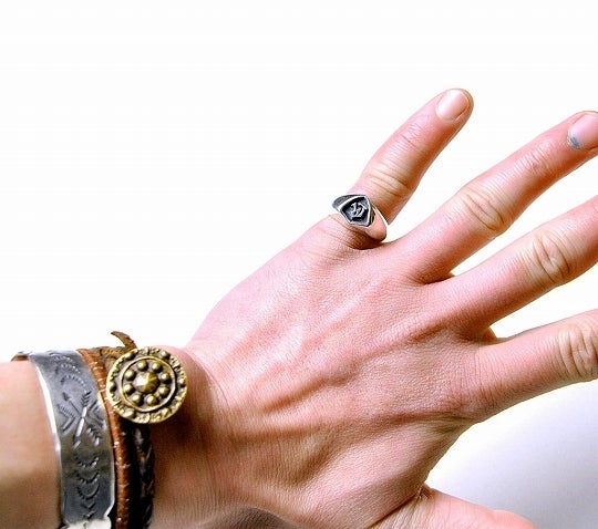 ポケットからチラリとのぞくオリジナルバンダナ。