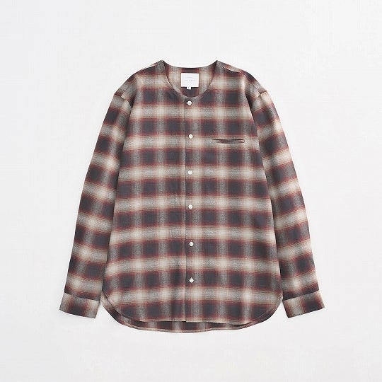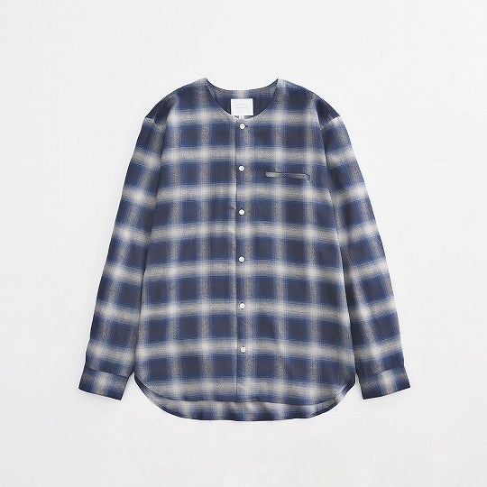 ノーカラーのシャツはチェックで。