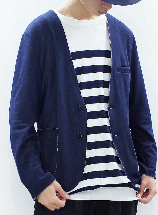 ノーカラーのテーラード。