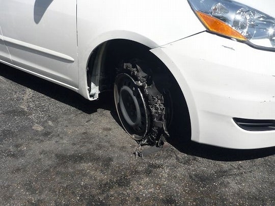 帰り道で豪快に車がパンクしたので、