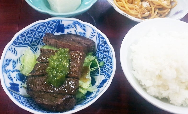 ってな感じで焼肉屋さんのお昼の定食はゴージャスに厚切り。