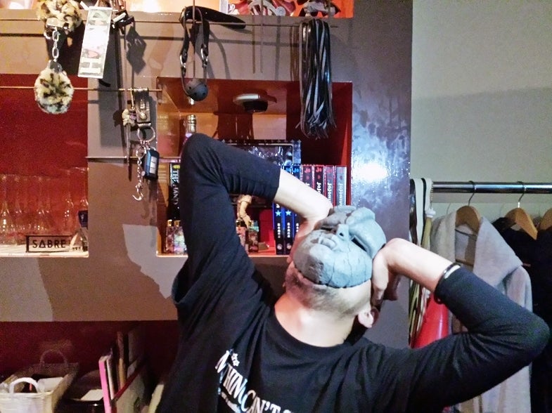 人のジャケットと眼鏡で遊ぶDAIDAI。