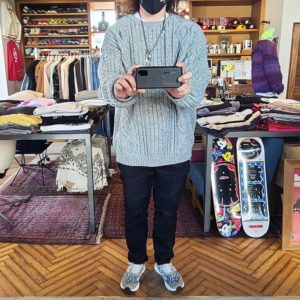 大きなカーディガンは着てもらえば伝わる良さ。