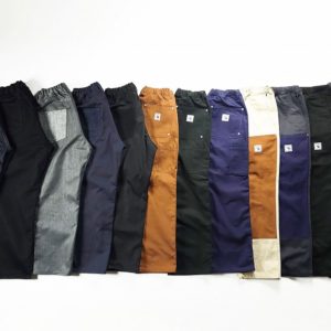 今シーズンの気分はガッツリWORK!やりたいスタイルはダック地のジャケットに厚手のフーディー、そしてTIMBERLANDやボリュームのあるスニーカー。今の自分の作り出すスタイリングイメージに追加された要素が、Wu-Tang Clan : An American Sagaの映像や雰囲気。(もちろんみんな見ましたよね?)自分自身90年代にHIPHOPに傾倒していましたが、ファッション的に自分がそっちの方向性をすることはほとんどありませんでした。ただ一つ一つのアイテムはとても魅力的で、自分のスタイリングに取り込んだアイテムは当然多数。カバーオール、ペインターパンツ、フーディー、迷彩、デニム、ミリタリーアイテムなどはもちろんメンズの定番アイテムとして存在していますが、トータルで着こなした時のシルエットや色使いで当時のHIPHOPの雰囲気を感じていたんだと思います。ただ今作るのは2024年の洋服。自分が作る物では過去の物をまんまの雰囲気やシルエットで作ることには興味がありません。近年は軽い、薄い、快適さを求めている部分がありましたが、今シーズンは無骨、重厚感(程よくw)が重要なポイント。今シーズンを表現するのにWHIZではほとんど使用してこなかったダック地、T/CツイルなどWORKアイテムの定番生地を使用。ただ表面的にキャンバス地ではありますが今の着やすさも意識したWORKアイテム作りがポイント。世の中にある無骨な定番アイテムを僕が作ってもしょうがないので、そこは自分なりのデザイン性と遊びを加えたバリエーション。LUMP Co .,Ltd.をカンパニーネームとして刺繍したり、タイガーカモの中には蓄光プリントを。無骨なスタイリングでも綺麗な配色や遊びが入った要素を入れてWHIZLIMITEDとして2024年を表現しています。