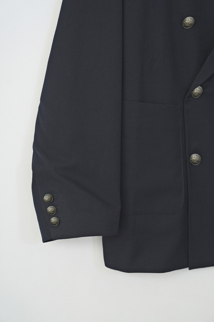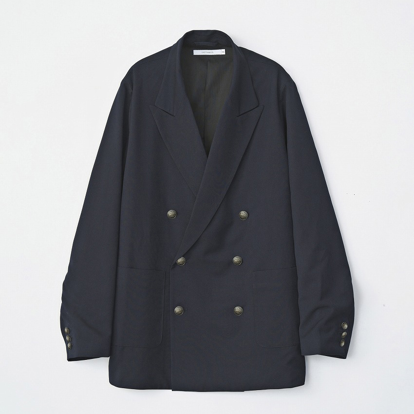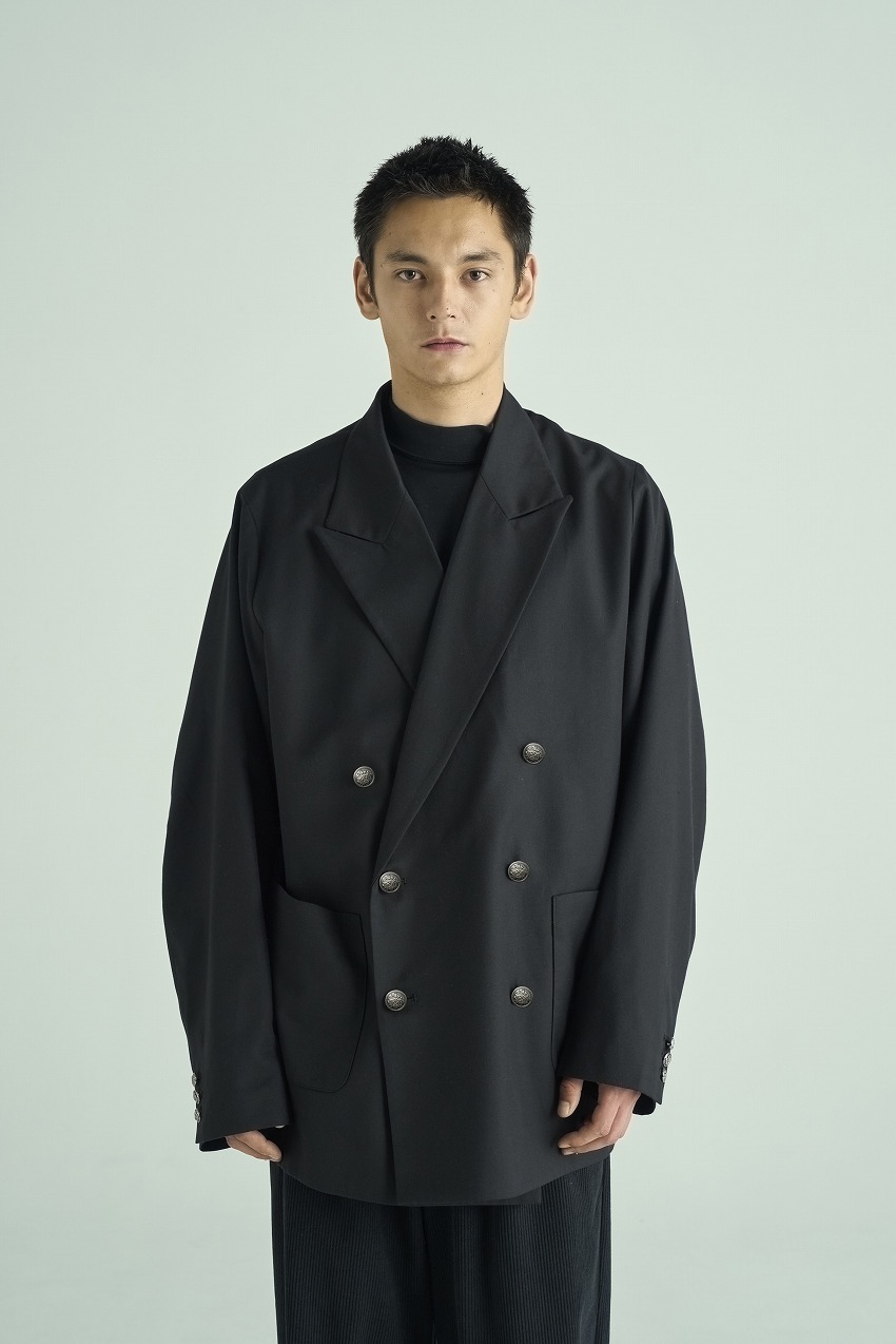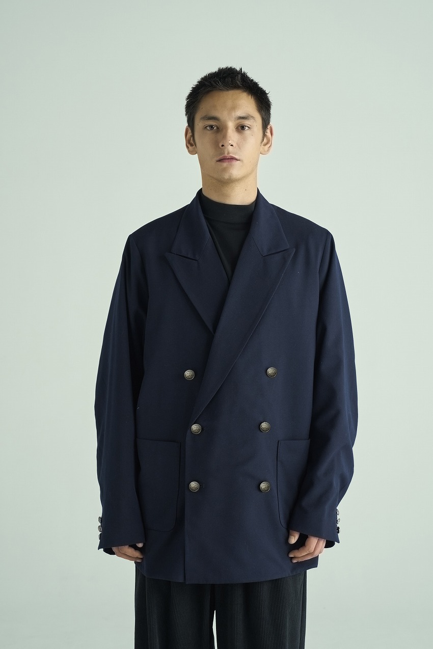 クラシックなダブルブレストデザインを、軽やかでカジュアルな雰囲気に仕上げたジャケット。ポリエステルに、レーヨンの滑らかさとウールの程よい温かみをブレンドした生地を使用し、しなやかで快適な着心地を実現しています。フロントにはラフな印象を添えるパッチポケットを配し、背面には動きやすさと通気性を高めるサイドベンツを採用。リラックス感のあるシルエットで、Tシャツやデニムとも好相性。テーラードの上品さを残しながら、日常使いにも馴染むこなれた一着です。