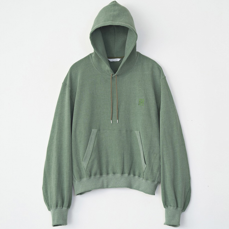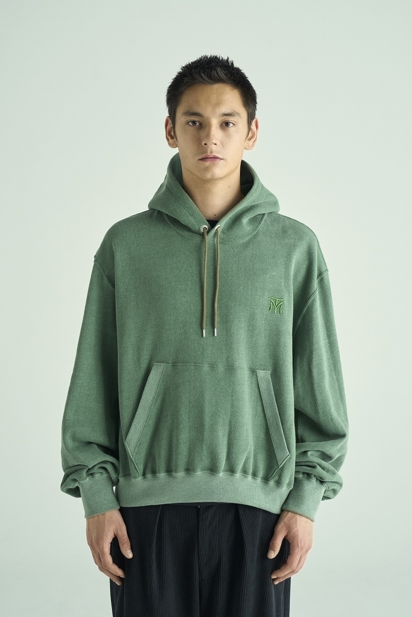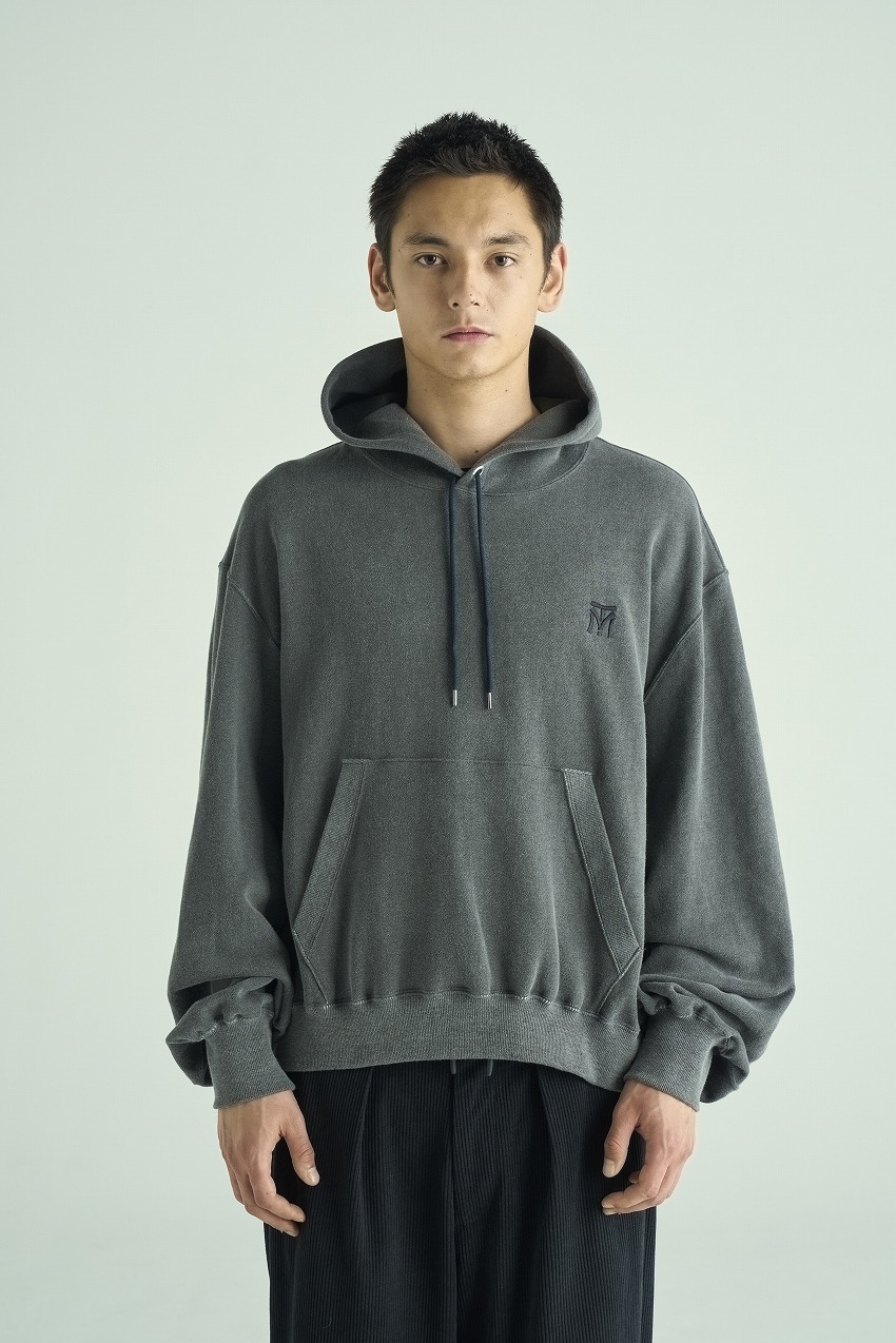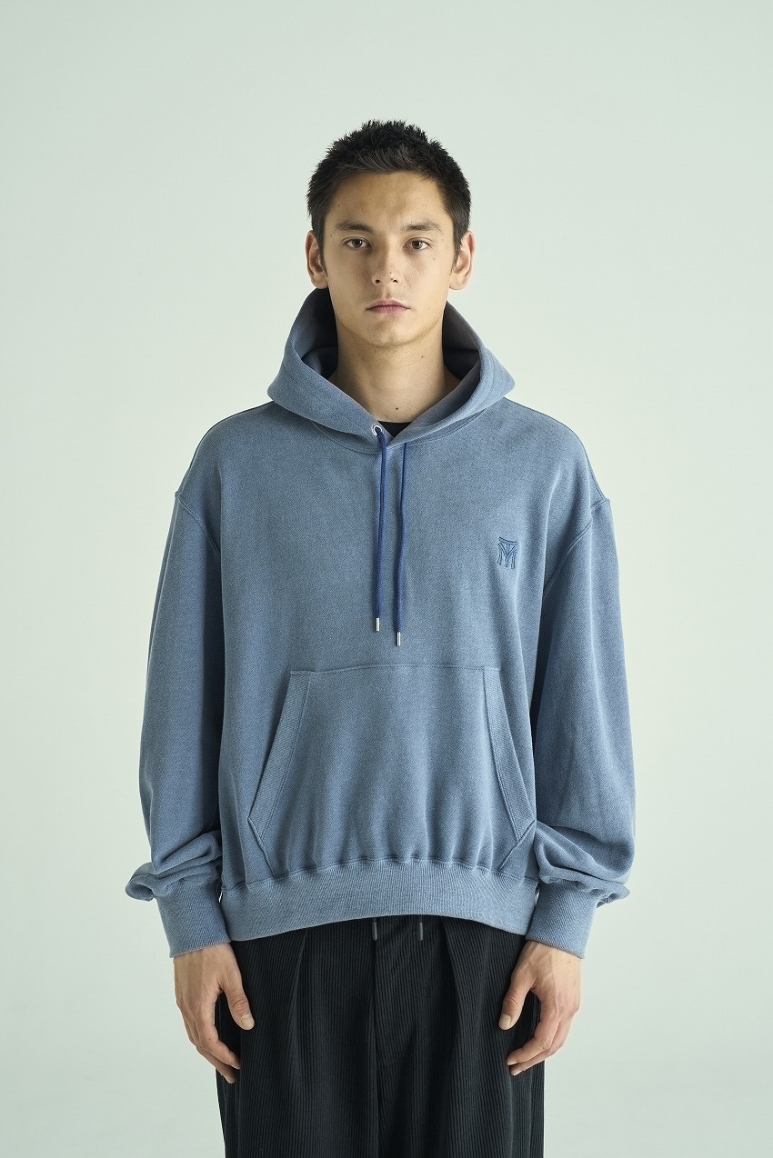フェード感のある裏毛生地を使用したショート丈パーカー。独特の色落ちと風合いを備えた生地は、着込むほどに表情が増し、ヴィンテージライクな佇まいを演出します。身幅にゆとりを持たせたワイドシルエットを採用しつつ、袖丈をやや長めに、着丈をコンパクトに設計。ボリューム感を保ちながらも全体を軽快に見せ、現代的でバランスの取れたシルエットを実現しています。ウエスト位置が高く見える視覚効果により、スタイルアップ効果も期待できます。フロントは逆開のジップアップ仕様で、カジュアルな日常着としてはもちろん、ミニマルかつ洗練された印象で、シーンやスタイルを問わず汎用性の高い一着です。