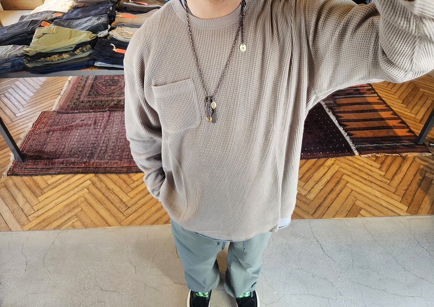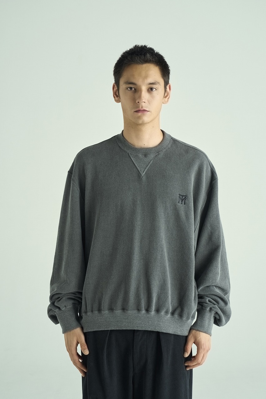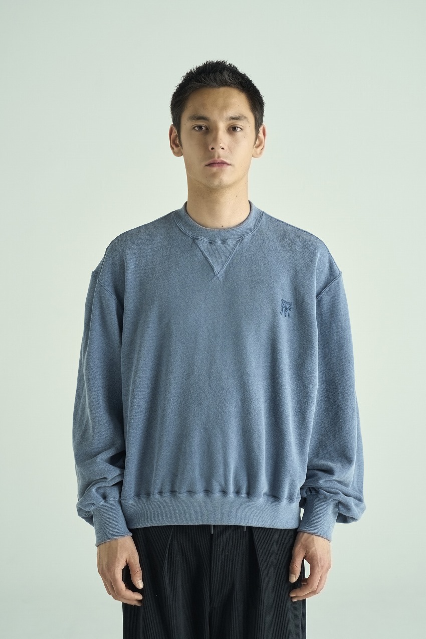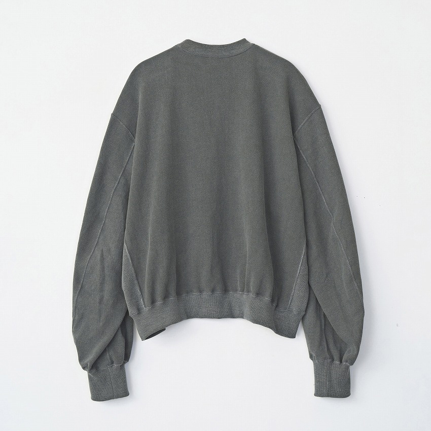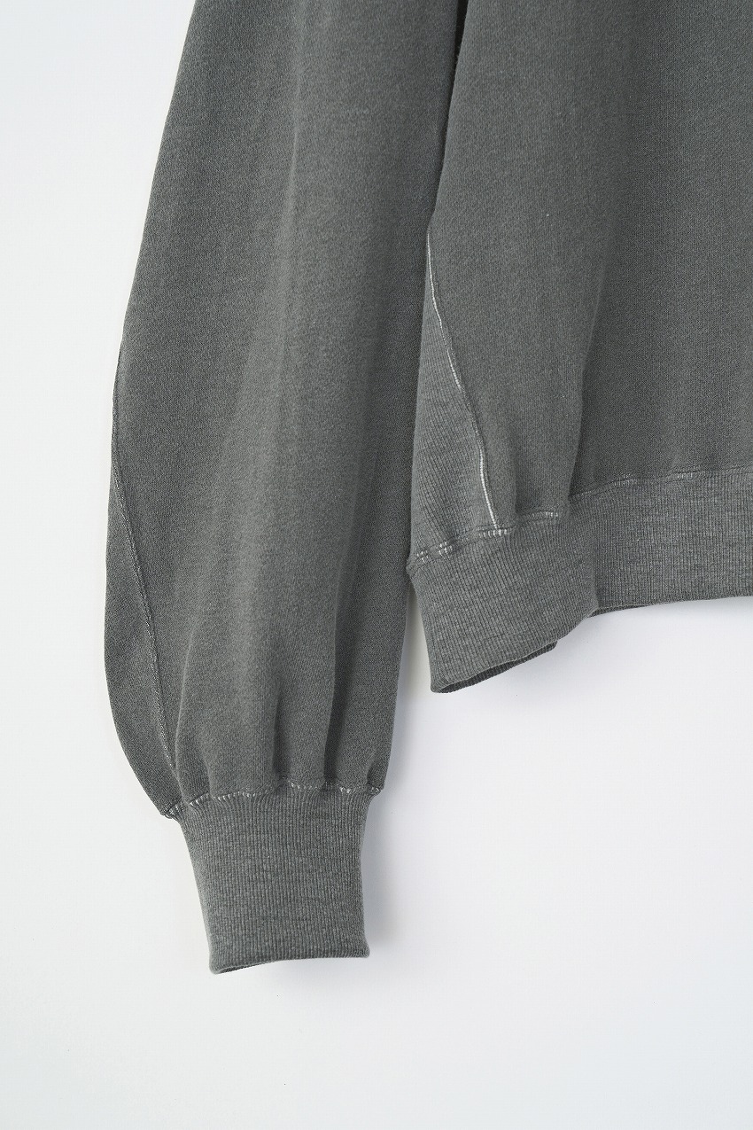 フェード感のある裏毛生地を使用したショート丈スウェット。独特の色落ちと風合いを備えた生地は、着込むほどに表情が増し、ヴィンテージライクな佇まいを演出します。身幅にゆとりを持たせたワイドシルエットを採用しつつ、袖丈をやや長めに、着丈をコンパクトに設計。ボリューム感を保ちながらも全体を軽快に見せ、現代的でバランスの取れたシルエットを実現しています。ウエスト位置が高く見える視覚効果により、スタイルアップ効果も期待できます。フロントは逆開のジップアップ仕様で、カジュアルな日常着としてはもちろん、ミニマルかつ洗練された印象で、シーンやスタイルを問わず汎用性の高い一着です。