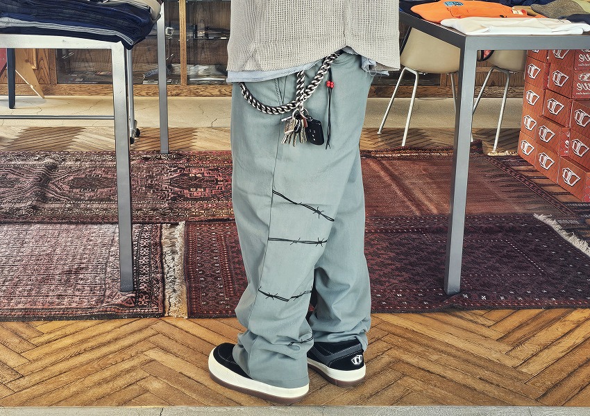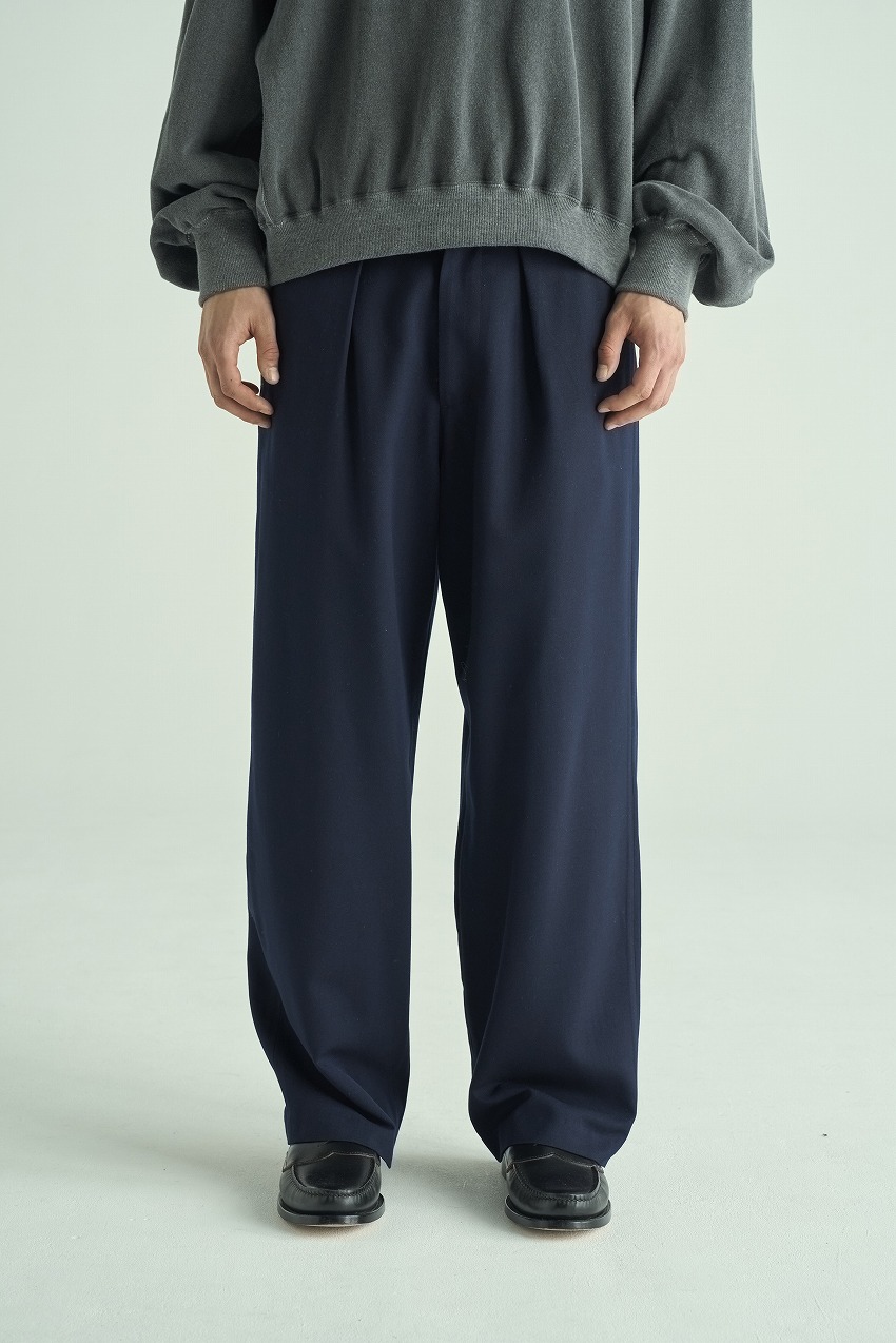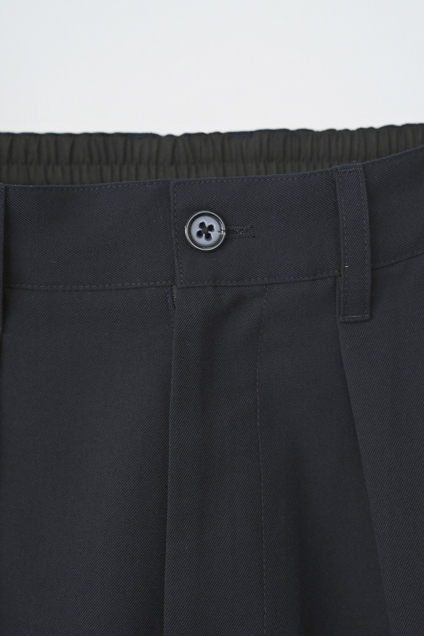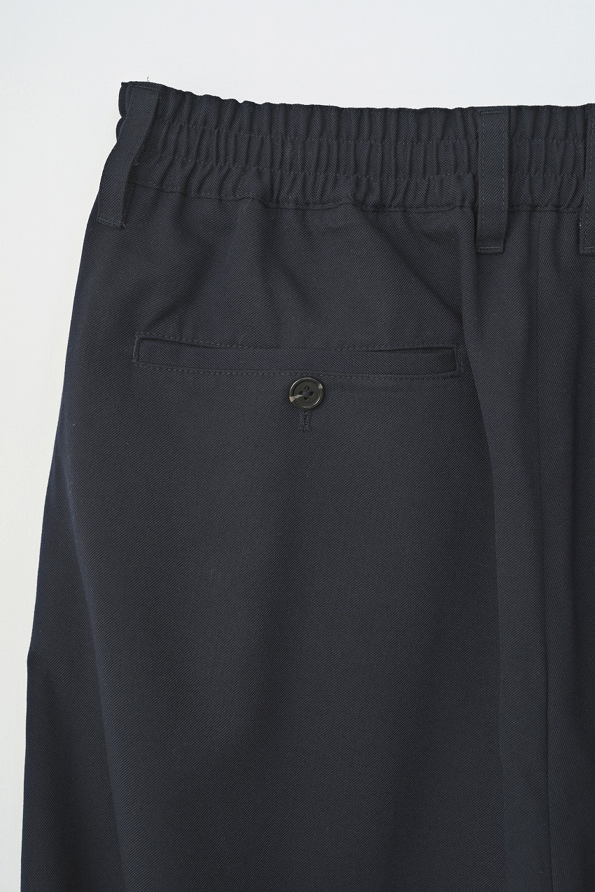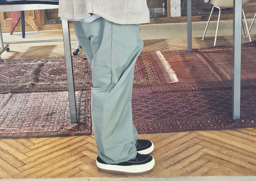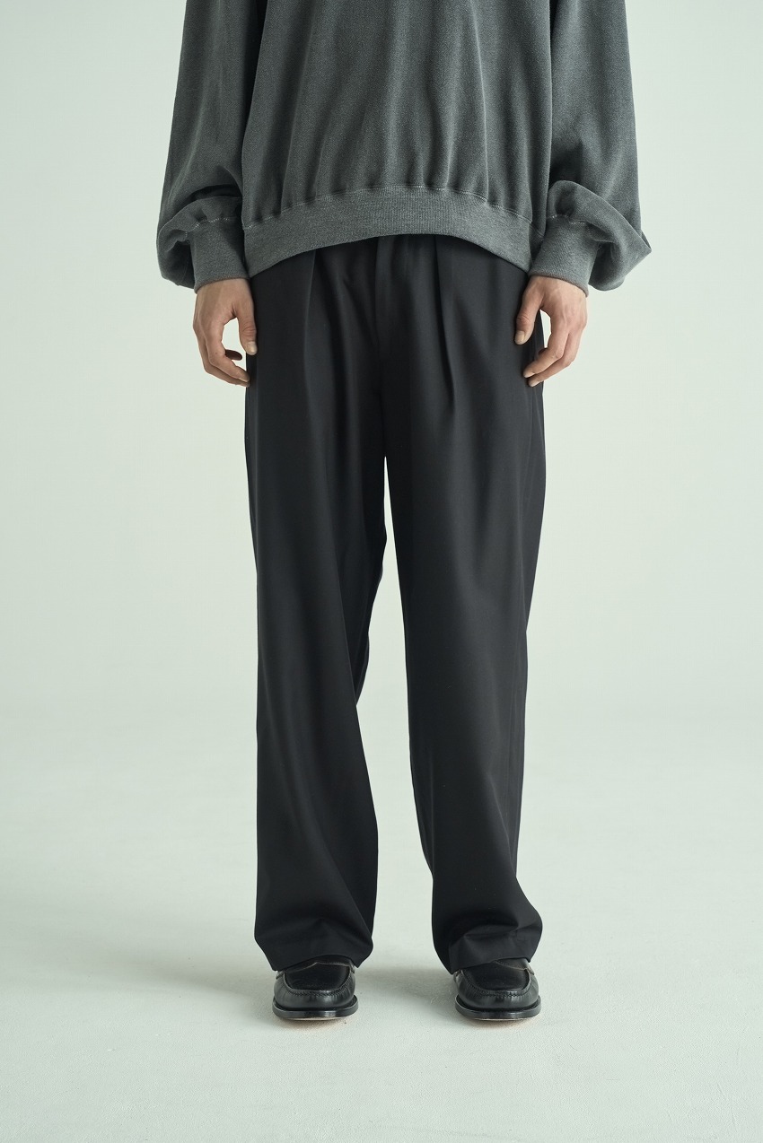 ポリエステルにレーヨンの滑らかさとウールの程よい温かみをブレンドした生地を使用したワイドイージーパンツ。高密度な圧縮フラノ素材により、柔らかな触感を保ちながらもしっかりとした存在感を感じさせます。寒い季節でも心地よい温かさを提供しつつ、軽やかな着心地を保ち、上品で落ち着いた印象を与える一着です。ウエスト部分には背面のみゴム仕様を採用。イージーパンツの快適さを維持しながらも、正面からのすっきりとした印象を実現しています。快適な着心地を兼ね備え、日常使いやカジュアルシーンにぴったりなアイテムです。