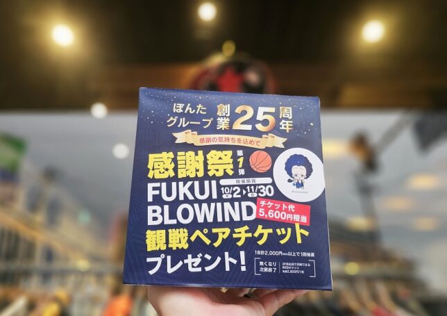 blogGET。 おはようございます。全ての文脈をふっ飛ばして、お店でこんなキャンペーン開始です。25周年感謝祭。バスケットボールの観戦チケットが当たります。2000円以上お買い上げでボッ... 2025.10.06blog