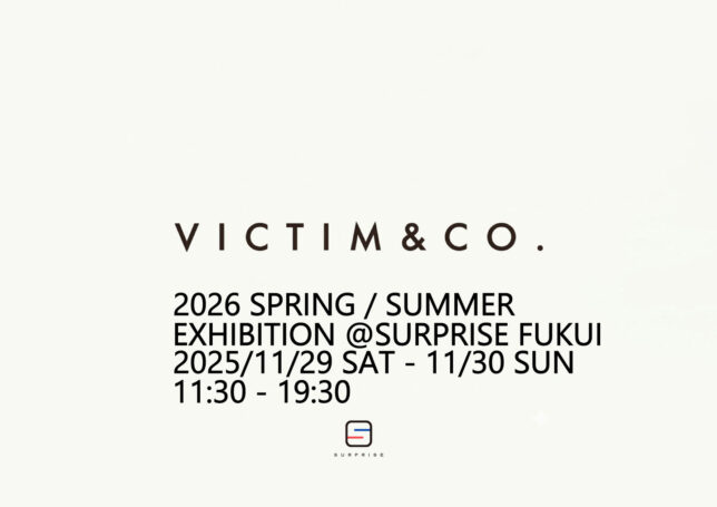blog突然すぎますが今週末の土日に受注会開催です「VICTIM 2026 S/S」。 おはようございます。めちゃめちゃ突然なお伝えですみません。今週末の、11/29(土)と11/30(日)、SURPRISE店頭にて、VICTIM 2026 SPRING/S... 2025.11.25blog