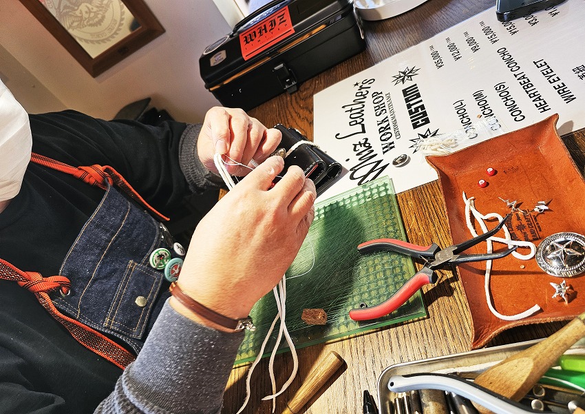 WhizLeathers職人のシンヤさんの技術が輝く。