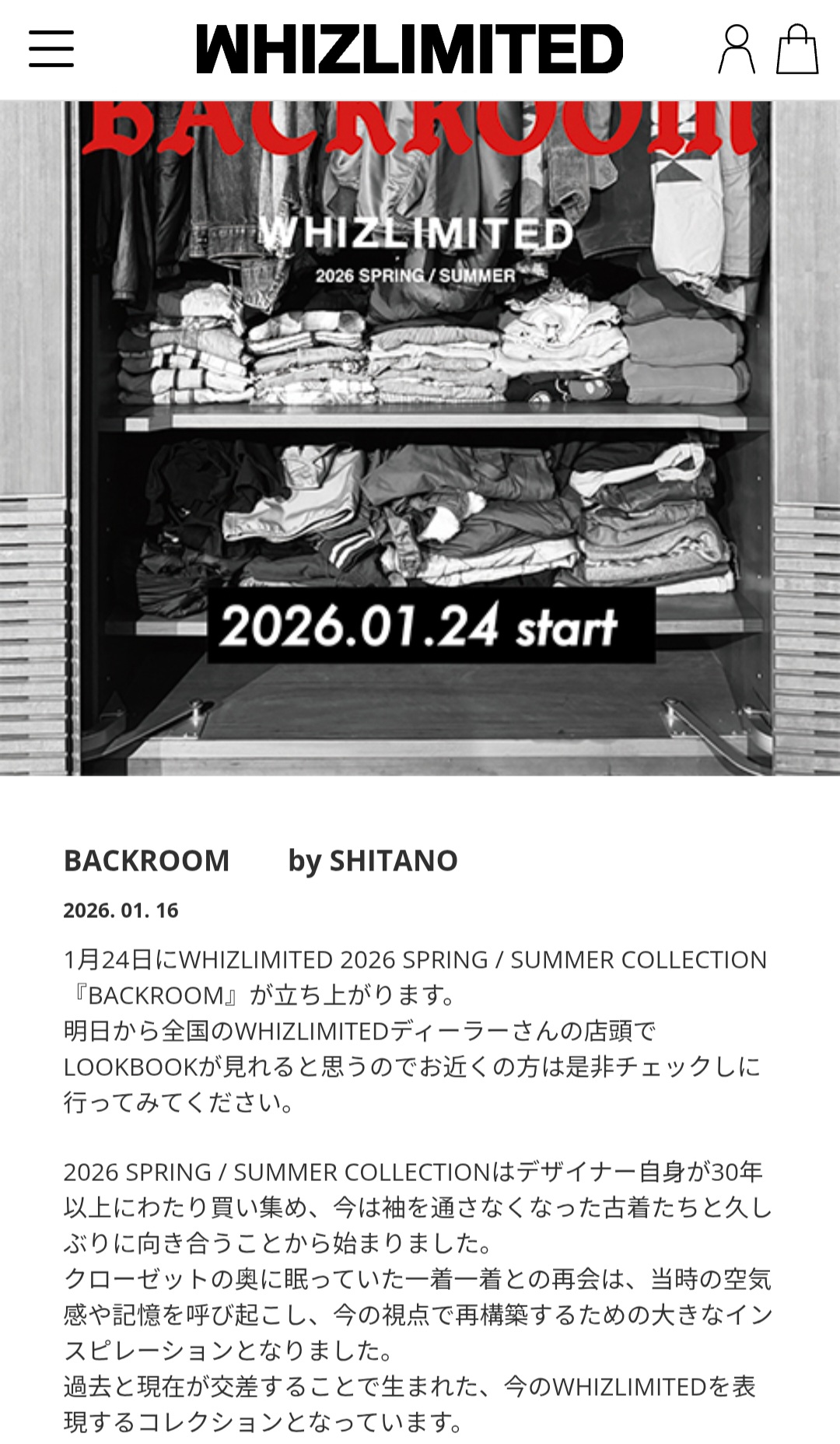 WHIZLIMITEDのホームページが2026 S/Sに更新されました。