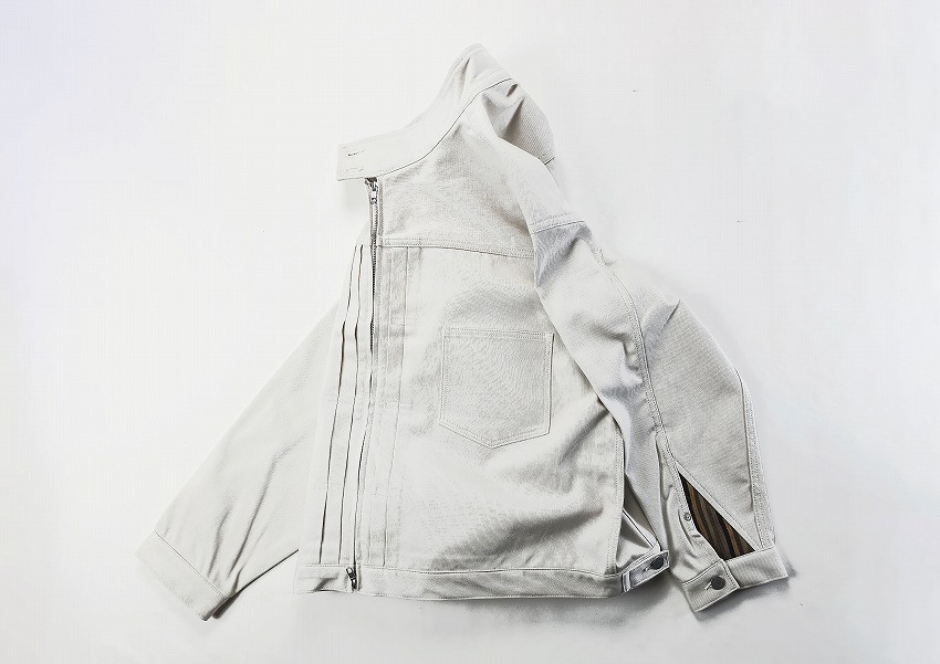 WHIZでは初登場となるこのピケ素材。経緯二重織で表面に縦に太い畝がある丈夫な織物、という素材です。初登場で馴染みが無いっことは新しい体験、というのも楽しいですね。その理由は王道アメカジの定番素材で凹凸ある織りで良い面構えに硬い生地のイメージの敬遠からを突然今季の一番初めのデザインとなったピケのジャケットとパンツでセットアップ。適度に張りがあるが故にあらわれる綺麗なシルエットでピケを使用したデニムジャケット+ドリズラーな仕上がりに。袖裏にはアレキサンダージェラルドの生地を使用してミッドセンチュリーのクラシックな雰囲気をプラス。久しぶりのジラルドでさらに歴史を感じれます。着るたびに楽しみがある雰囲気があるアイテムは一見シンプルに見えつつ、新鮮な生地感となじみあるディティールで着やすいアイテムです。春先に必見のジャケット、どうぞセットアップをお楽しみくださいね。