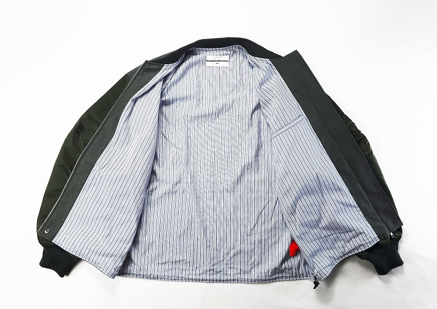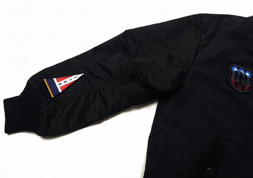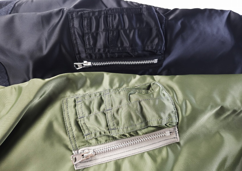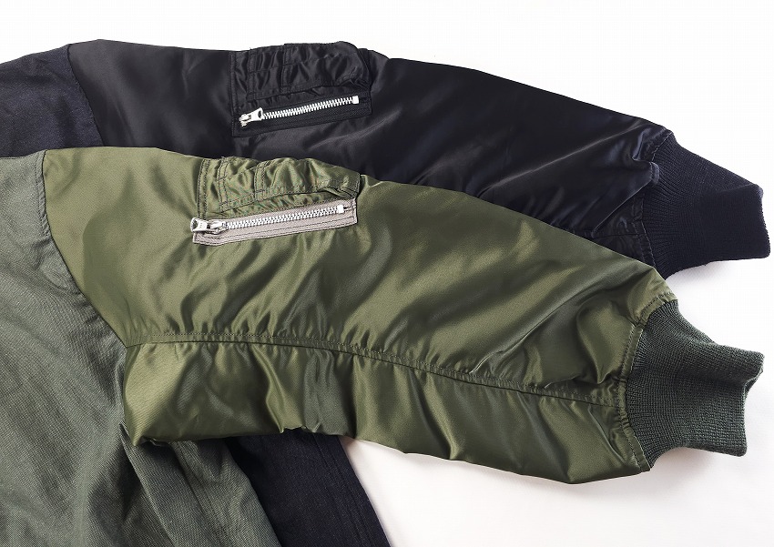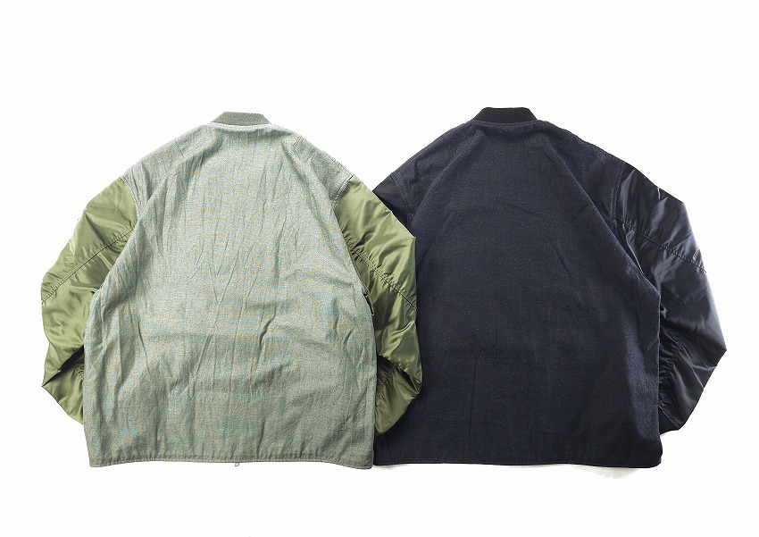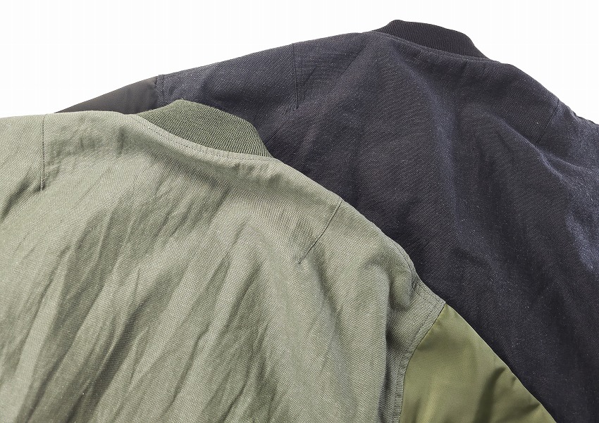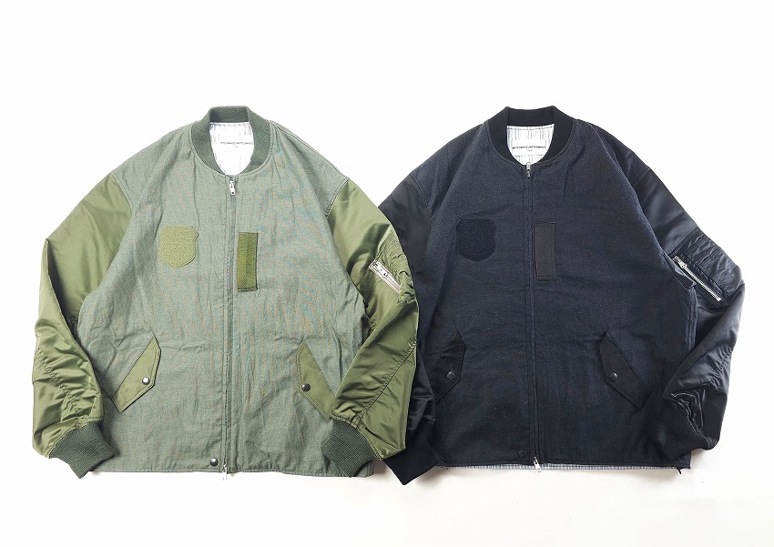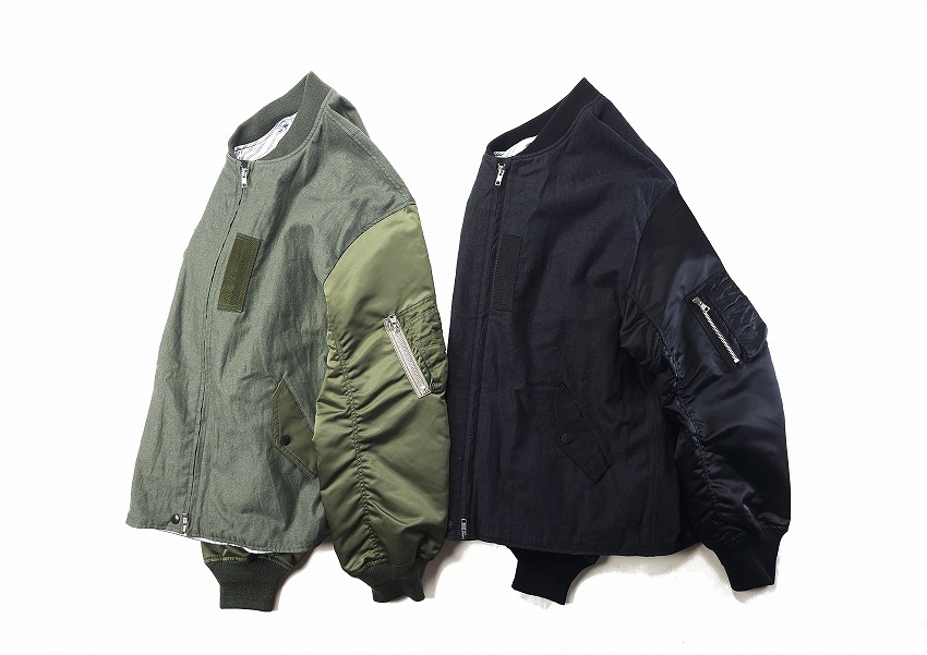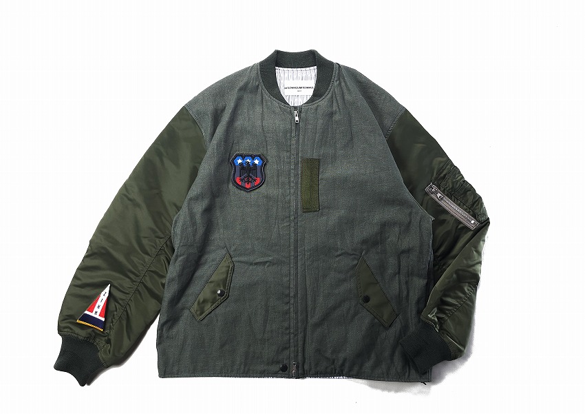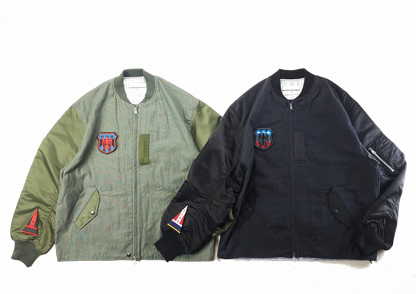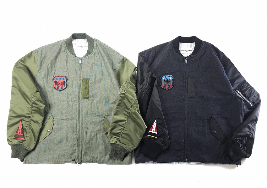 春夏のジャケットのスタートを飾るのはWHIZお得意のミリタリーアイテム。なぜ良いのか、は歴史の理解と解釈からだとよく分かる今作はRCAF(ROYAL CANADIAN AIR FOORCE)のフライトジャケット+MA-1。いつもMA-1をついつい着てしまう自分には春のこんな軽さのをどこか待ってた気がします。身頃にはワッシャー加工が施されたHWMP素材を使用してカジュアルな雰囲気に。さらに裏地にはオレンジではなく綺麗なストライブ生地を使用、ミリタリーに上品な要素がプラスされています。胸とはエンブレム、右袖先にはパッチのワッペンベースが付いて、別売りのワッペンを付けることができます。初発売となるTRIANGLE PATCHと再登場となるEAGLE EMBLEMを張り付けてお楽しみください。同時にスペシャルなSURPRISE限定となるブラック×レッドカラーの登場しています。ワッペンがあるとこのジャケットが必須アイテムになる不思議。どうぞカラーを合わせてお楽しみくださいね。