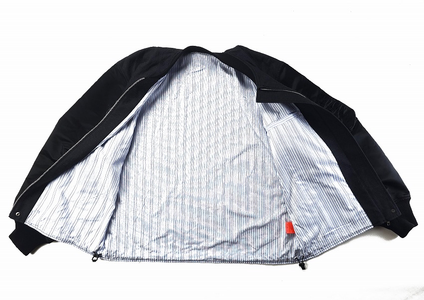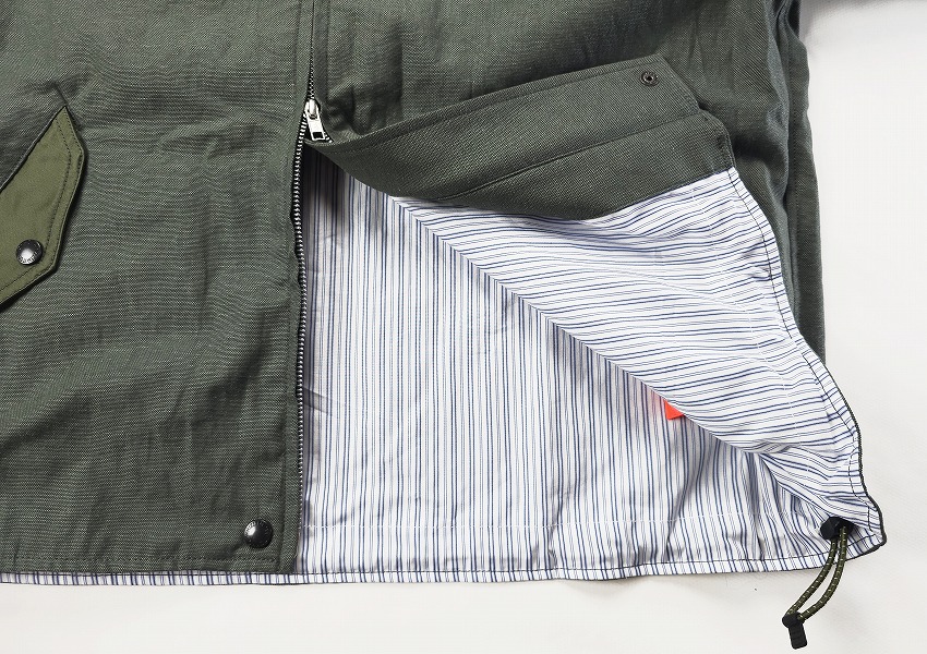 ダブルジップで裏はストライプ。