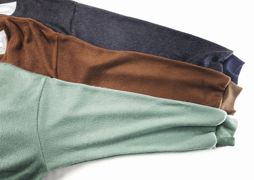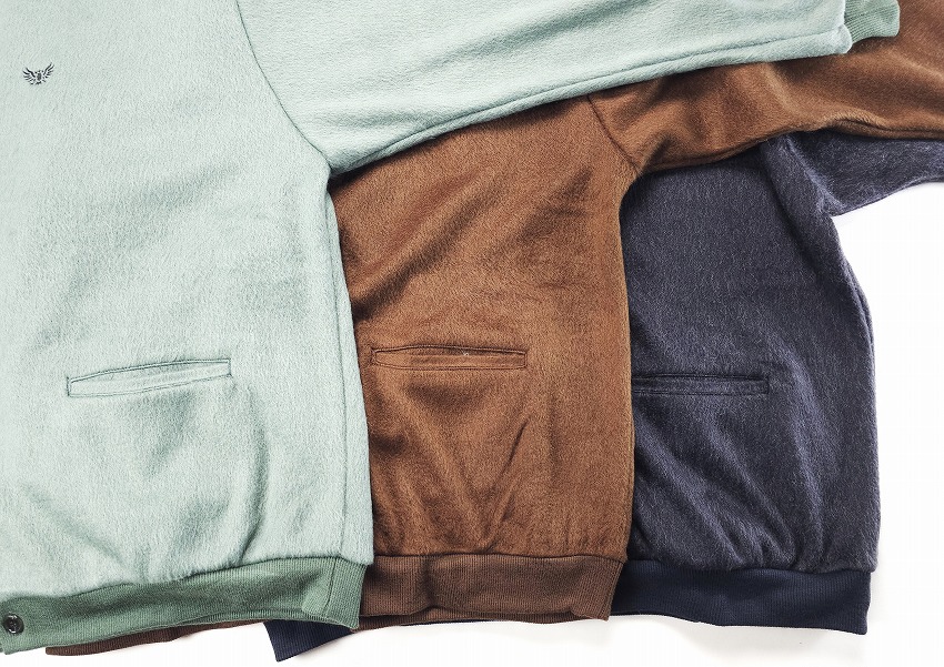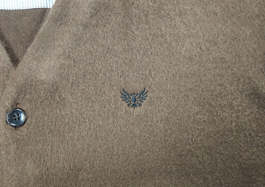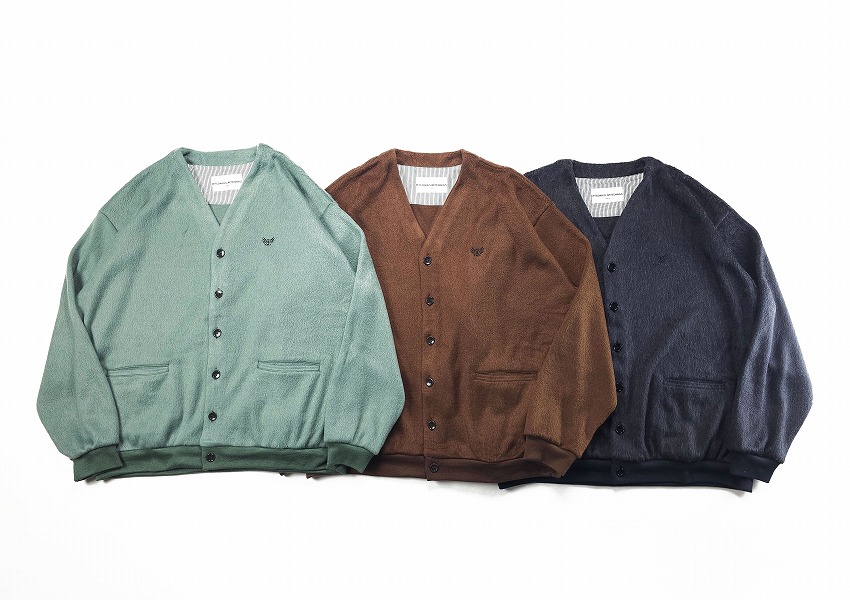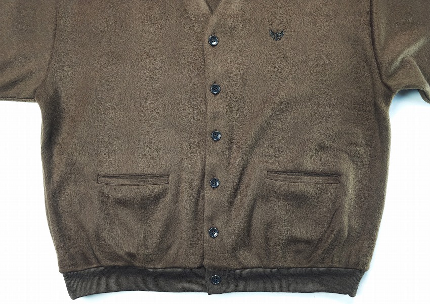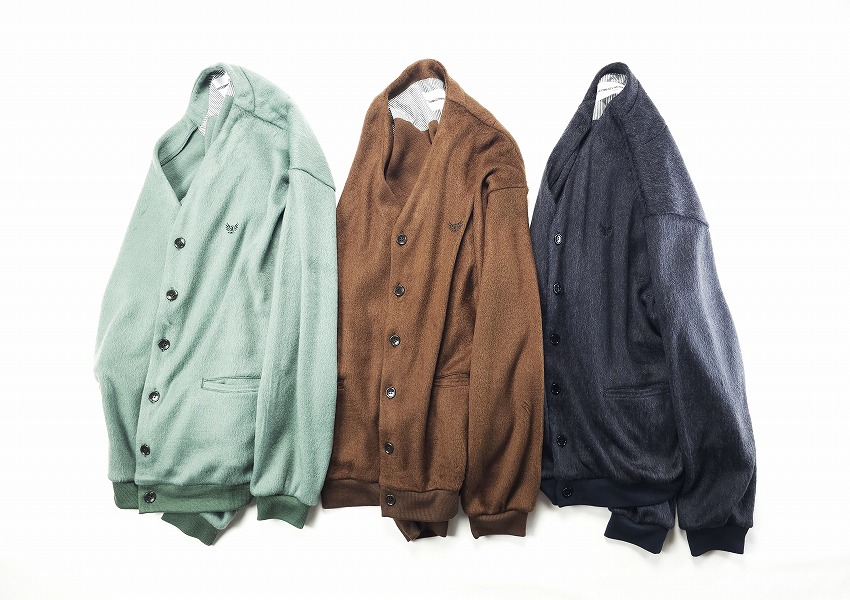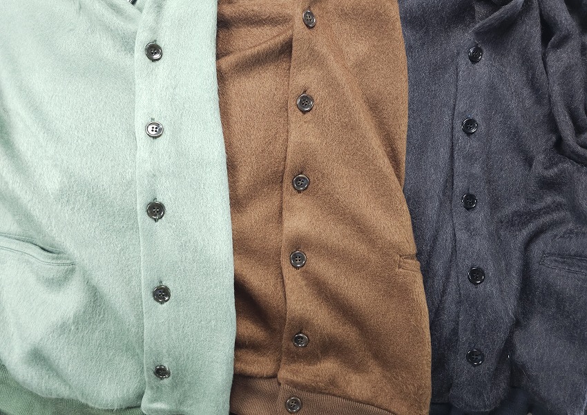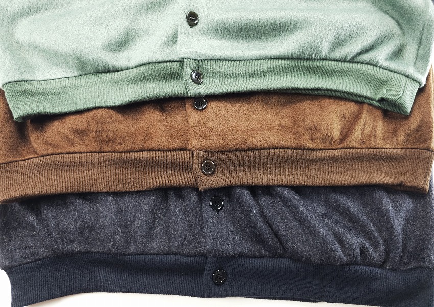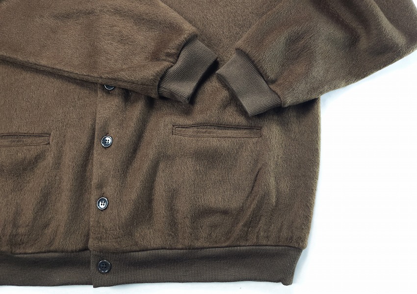 年々気になって毎年欲しくなって必須アイテムになっていくカーディガン。いつも表情を変えれ楽ちんな仕様は特に春には見逃せません。モヘアというか毛足の長い仕上がりはいつぶりかと感じつつ、そのカラーもまた一枚でもインナーでもとっても良い感じ。素材で表現されるカラーでピスタチオの新鮮さやブラウンの安定感、そしてブラックのゴージャス感はお好きな方にきっと伝わるかと思います。細かなボタンがまたさらに着やすく全てがオリジナル。胸にはイーグル刺繍が入る一見シンプルながらもこれくらいがちょうどいい。袖や裾のリブにもどうぞご注目を。ジャケットの中にも着ちゃいたいそんな一枚をお見逃しなく。